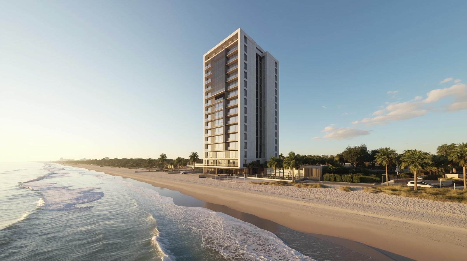 create-a-3d-photo-of-a-tall-apartment-building-near-the-beach.-3-4